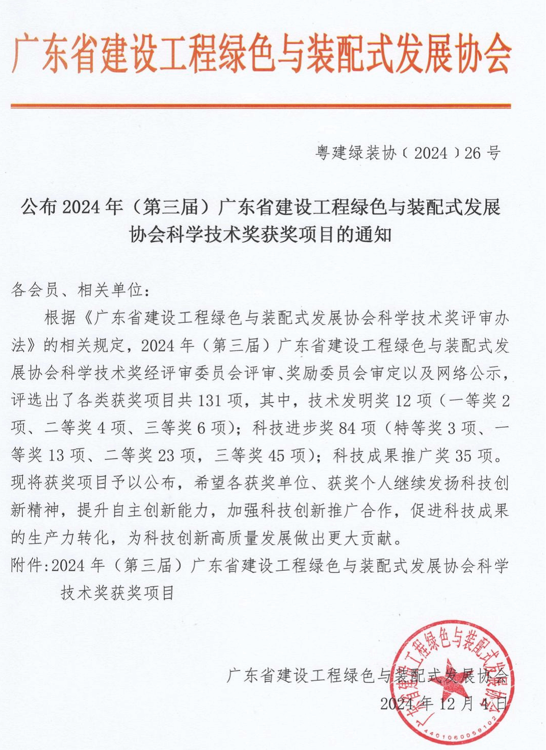 近日,广东省建设工程绿色与装配式发展协会公布了2024年科学技术奖,明胜m88官网卓献荣教授、毛娜教授、张玉杰和邱剑辉老师参与的项目“混凝土-钢混合装配式民居建筑建造关键技术研究”获得科技进步奖类二等奖(明胜m88官网为第二完成单位);李松老师参与的项目“再生-超高性能混凝土材料及构件性能研究与应用”获得技术发明奖类二等奖(明胜m88官网为第三完成单位)。