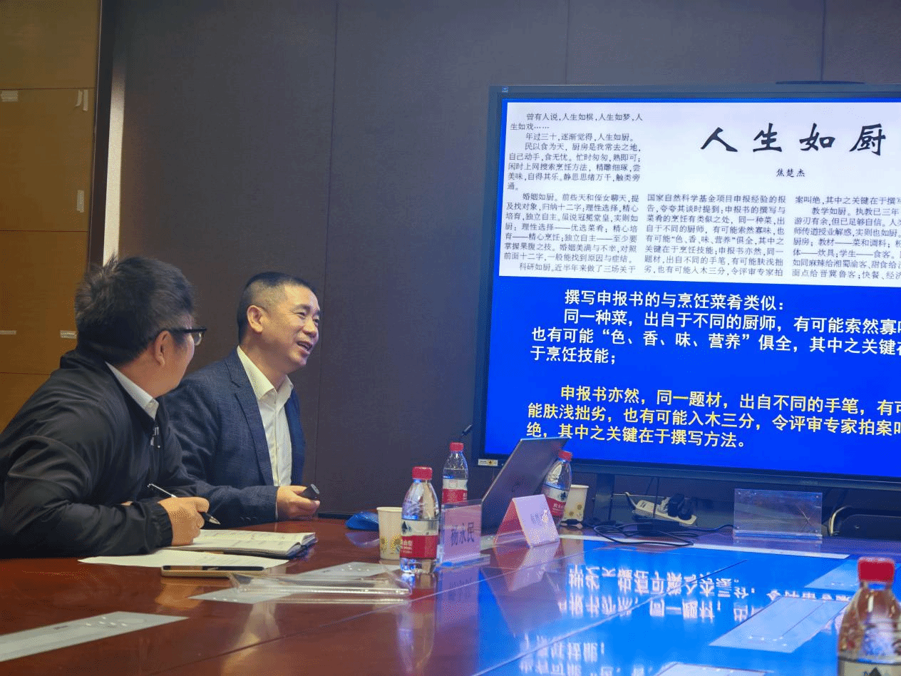 在互动交流环节,老师们积极提问。焦教授一一耐心解答,并针对每个问题给出了具有建设性的指导意见。他鼓励大家要勇于尝试,在不断的实践与积累中提高申报水平。