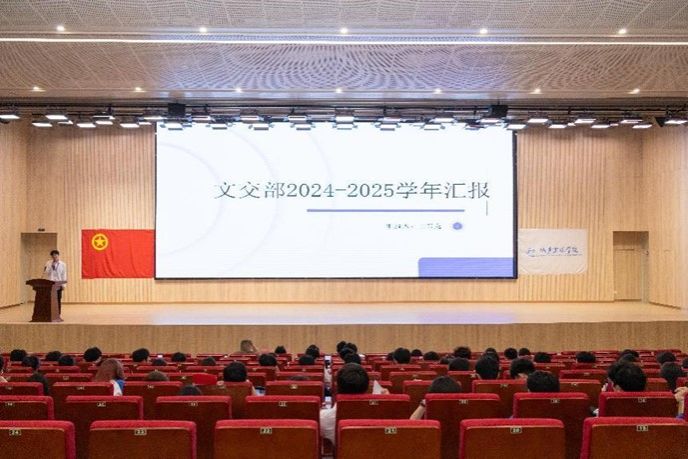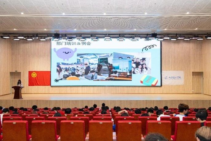 接下来是各部门代表进行工作汇报。团委各部门代表、学生会各部门代表、新闻中心各部门代表和解忧摆渡站代表依次上台汇报。他们就各自部门的分工情况与工作特点进行简要介绍,紧张的工作同时也有部门团建,汇报当中也展示了部员们团结工作、快乐团建、友好相处的场景。