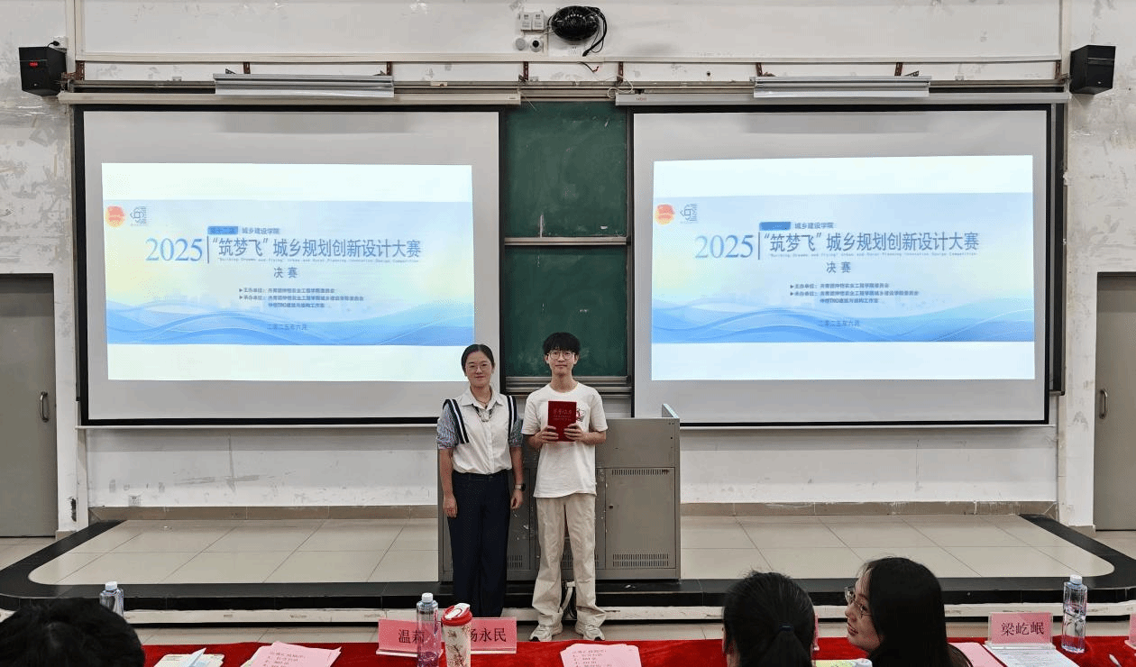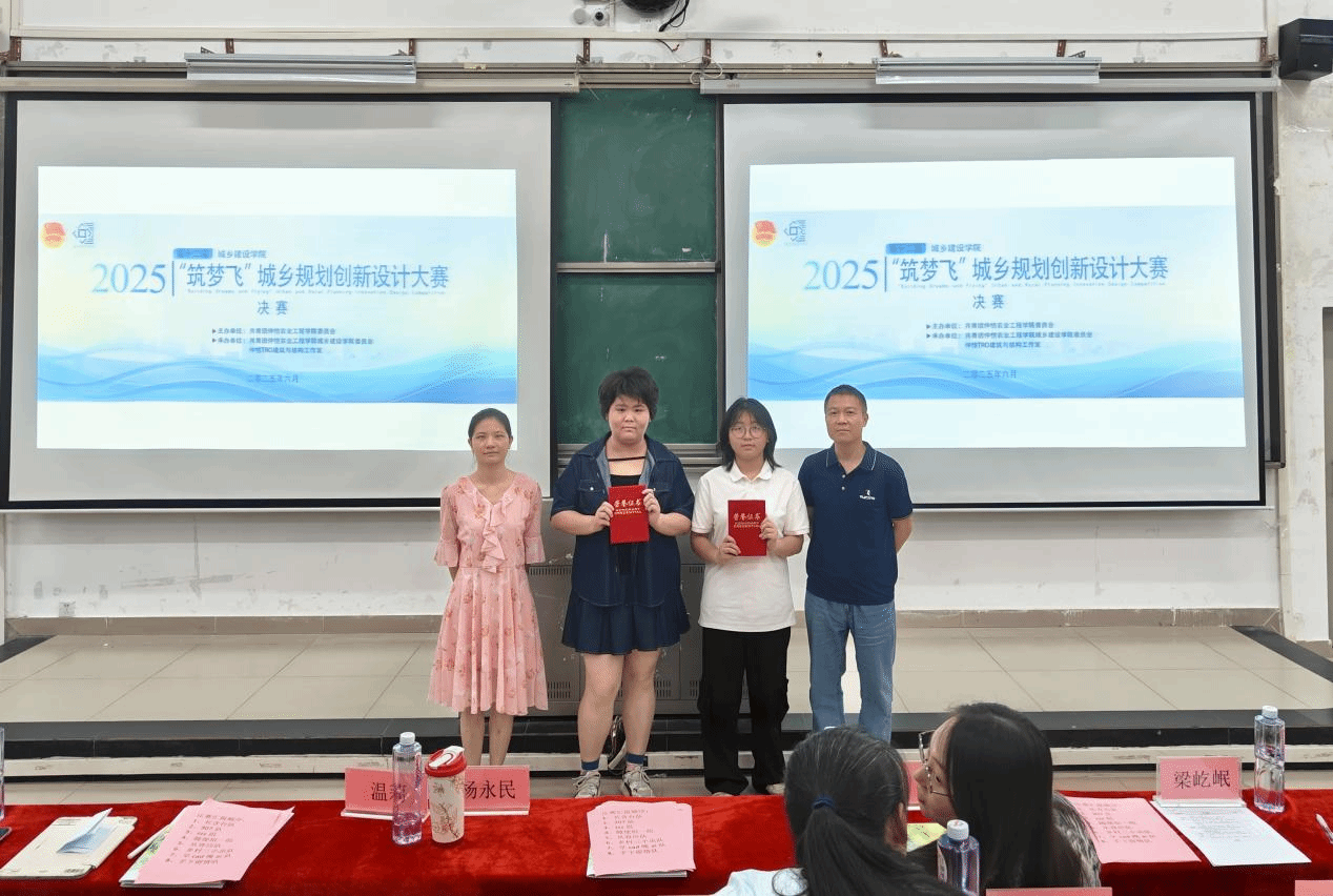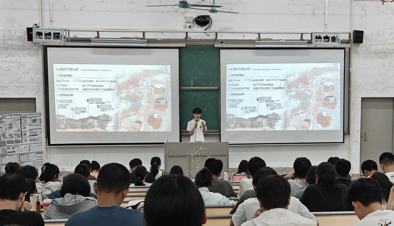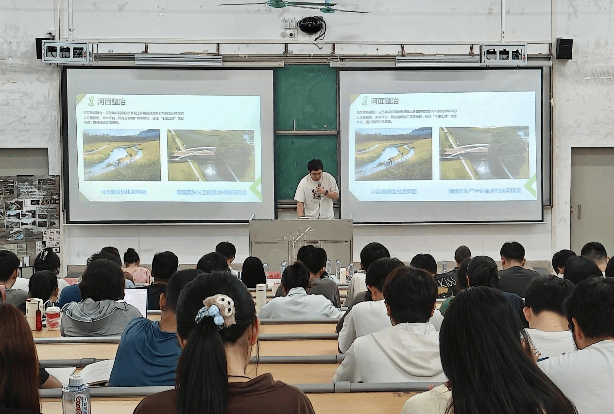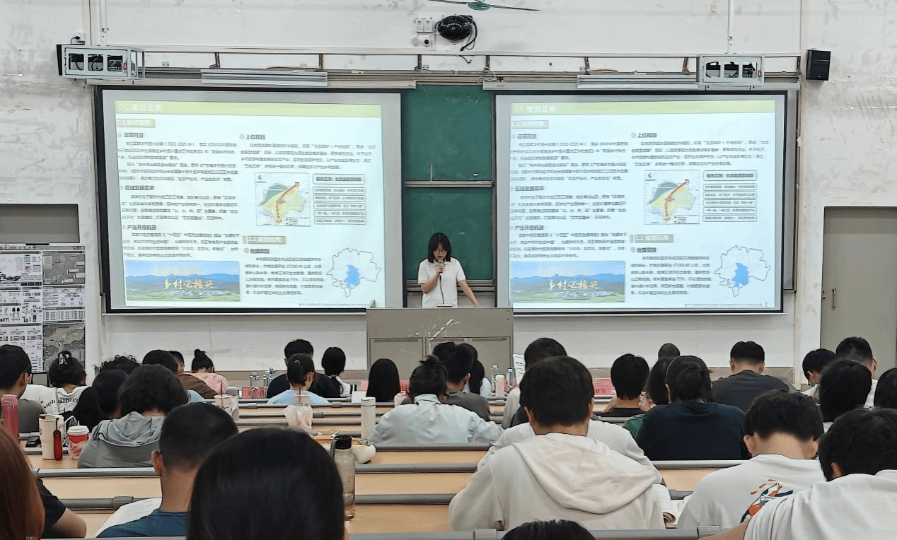 展示环节结束后,温莉老师代表评委组作总结发言。她以“担当、突破、传承、期待”四个关键词分享赛事感悟:赞扬同学们扎根乡土、服务社会的“担当”精神;肯定本届作品在成果丰富度(涵盖报告、展板、视频)、质量深度(融合GIS空间分析、灾害风险评估、文旅策划等前沿方法,兼具落地潜力)及议题广度(超越空间设计,深入运营机制、文化传承等)上实现的显著“突破”;欣喜于高低年级协作“传承”的优良学风;并“期待”师生将“真题真做”精神延续,深化“以赛促学、以赛促教”模式,推动教学与乡镇发展需求更紧密结合,助力优秀方案落地转化,为乡村振兴注入青春动能。