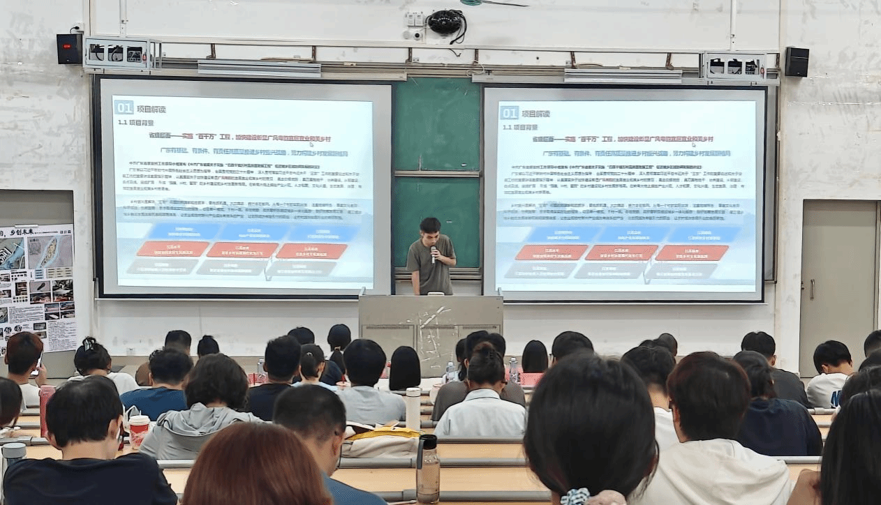 决赛聚焦乡村振兴主题,8支参赛队伍依次登台展示。各队围绕韶关市江湾镇、肇庆市渔涝镇等广东省“百千万工程”农业科技特派员项目对口帮扶的镇村的实际需求,深入调研、精心设计。在8分钟方案展示及答辩环节中,选手们巧妙运用专业知识,从灾后重建与韧性提升、三产融合振兴、文旅IP创意到研学运营探索等多个维度,呈现了充满智慧与创意的乡村振兴蓝图,生动展示了精心设计的IP形象。