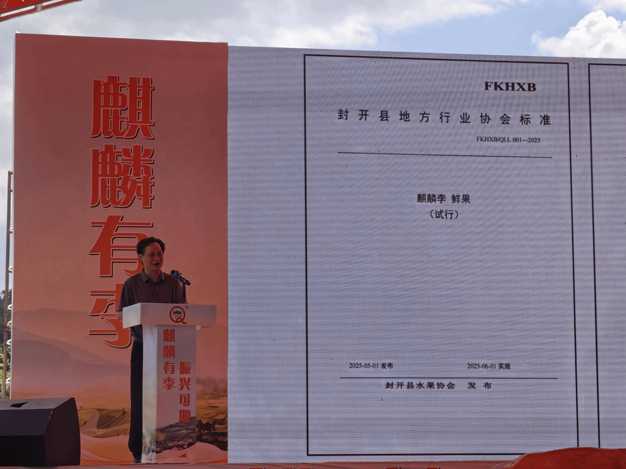 在硕果盈枝、李香满园的丰收时节,“麒麟有李,振兴可期”2025年第三届封开县麒麟李采摘活动于6月21日在封开县渔涝镇圆满举行。作为长期扎根渔涝镇、深度服务麒麟李产业的仲恺-肇庆学院科技特派员团队,全程参与活动策划与技术支撑,也在开幕式上发布麒麟李产业两大核心亮点——“麒麟李鲜果果品标准”与“麒麟李产地溯源二维码系统”。这次新标准、新技术的发布不仅是麒麟李产业成果的集中展示,更是标志着该产业在标准化、数字化、品牌化道路上迈出的关键一步。